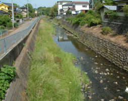 | 両岸コンクリート護岸だが、左岸は堆積物に植物が生い茂り、自然な水辺を | ||||||||